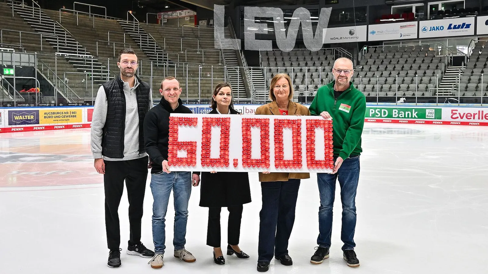 Das traditionelle „Spiel der Herzen" hatten die Augsburger Panther gemeinsam mit der LEW im Dezember durchgeführt. Dabei kamen an dem Abend bereits über 40.000 Euro zusammen: Diese Summe setzt sich zusammen aus den Erlösen der Herz-Verkäufe im Curt-Frenzel-Stadion in Höhe von 28.600 Euro. 5.000 Euro gab es über das Volunteering-Programm der LEW, mit dem das ehrenamtliche Engagement der LEW-Mitarbeitenden gefördert wird.
