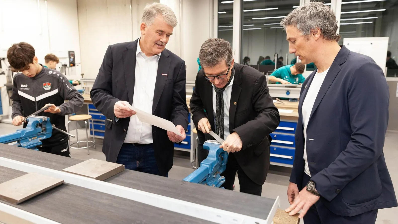Von Seiten der beiden Sportvereine nahmen Roy Stapelfeldt, Kaufmännischer Leiter des Nachwuchsleistungszentrums des FC Augsburg, und AEV-Präsident Lukas Gebele die Bedeutung einer beruflichen Alternative zur Sportlerkarriere in den Fokus. Gebele: „Es zeigt sich viel zu oft, dass die Nachwuchstalente, aber auch ihre Eltern, sich nur auf den Sport als einziges Karriereziel versteifen. Dies ist mit Sicherheit der falsche Weg, denn: klappt es mit einer Profikarriere nicht, braucht es eine Alternative. Das gilt auch für die Zeit nach dem Ende einer Sportler-Karriere. Daher unser Kredo: 49 Prozent Sport, 51 Prozent Schule und Ausbildung."