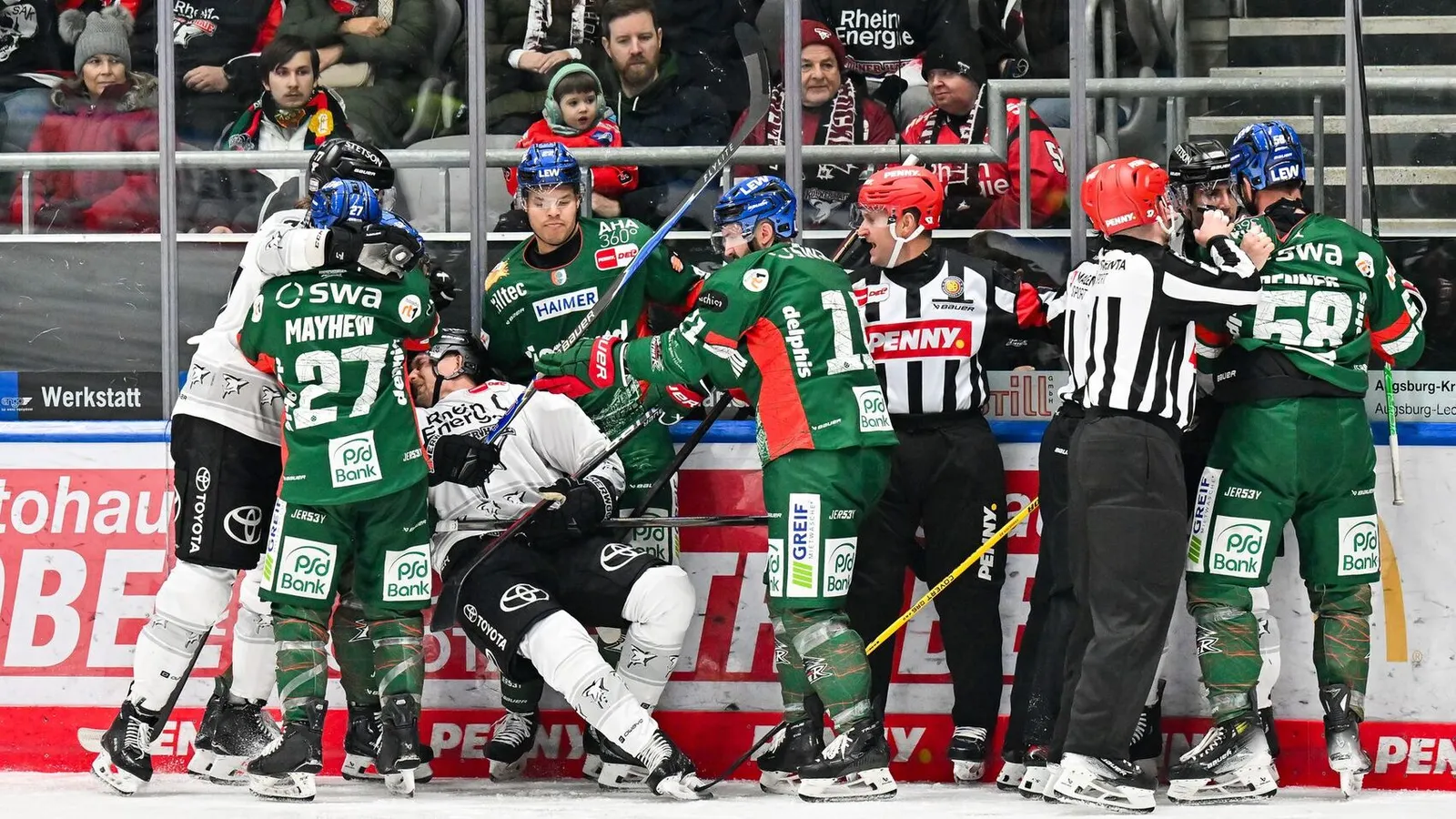 Die verbleibenden rund 70 Sekunden mit einem Mann mehr zu Beginn des 3. Drittels konnten die Panther nicht mehr nutzen, kurz vor Ablauf der Strafe gegen Bokk musste Mayhew zudem wegen Stockschlags in die Kühlbox. Doch im zweiten Penalty Killing konnte sich auch das Team von Bill Peters bei numerischer Unterlegenheit schadlos halten. Wenig später vergab Moritz Elias unter Bedrängnis in Minute 45 einen Alleingang und damit die große Chance zum Ausgleich. Und wieder nur kurze Zeit später war es der einmal mehr sehr engagierte Grenier, der die Hartgummischeibe nach einem stark vorgetragenen Angriff an die Latte setzte. Die Panther wollten mit aller Macht den Ausgleich, kämpften verbissen um jeden Zentimeter Eis und verdienten sich in der 53. Minute nach einem starken Offensiv-Wechsel und Strafe gegen Aubry ihr drittes Powerplay. Doch auch dieses konnten sie aufgrund einer Strafe gegen Louis nicht bis zum Ende spielen. Glücklicherweise konnte auch Köln nicht mehr in Überzahl nachlegen, die Schlussphase wurde bei einem Tor Differenz eingeläutet. 100 Sekunden vor dem Ende verließ Garteig sein Gehäuse zugunsten des sechsten Feldspielers, was die Haie 72 Sekunden vor Schluss durch Kero für die Entscheidung in einem engen Spiel nutzten. So gingen alle drei Punkte in die Domstadt.